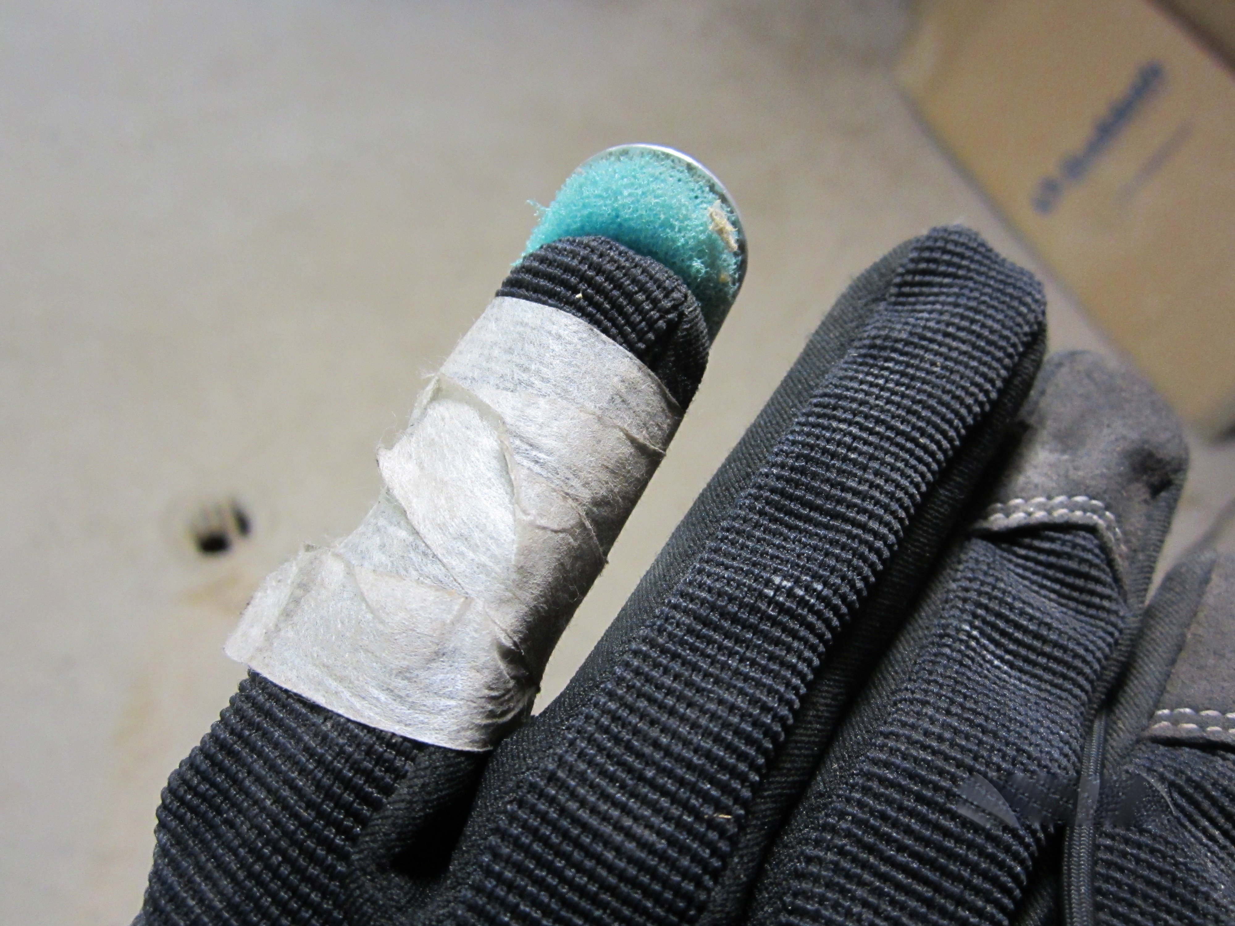 This means there were boxes and big tools everywhere. We decided to break up the effort into  three stages/areas. We moved our things out of the first area and began.  We looked good too. Imagine us in our grubbiest jeans and shirts, hats and bandanas on our heads, wearing our “demo” gear: knee pads, work gloves, particle respirator masks and eye protection. By the way, the eye goggles fogged up when I wore a respirator mask so I opted for the eyeglass style protection. They are worth wearing! A paint chip bounced off my eye protection rather than going into my eye while scraping paint off of a wall. The particle respirator is essential too! Ours were brown on the outside at the end of the day. Better than in our nose, sinuses and lungs. We changed masks throughout the day if needed. Don’t spare on this part. You’ll want high-quality knee pads to work on a concrete floor. We wear work gloves like a second skin. Even with this protection things happen. My husband hit his head on the large plumbing pipes so many times he finally fashioned a cushion out of three hats and a folded shirt! (Replaced with his father’s old hard hat once it was unpacked). I broke a bone in my little finger while washing a wall – didn’t see the bolt sticking out of the concrete that met my finger with great force. Splint and tape it and I’m good to go…plus Tylenol and ice packs. And chocolate.