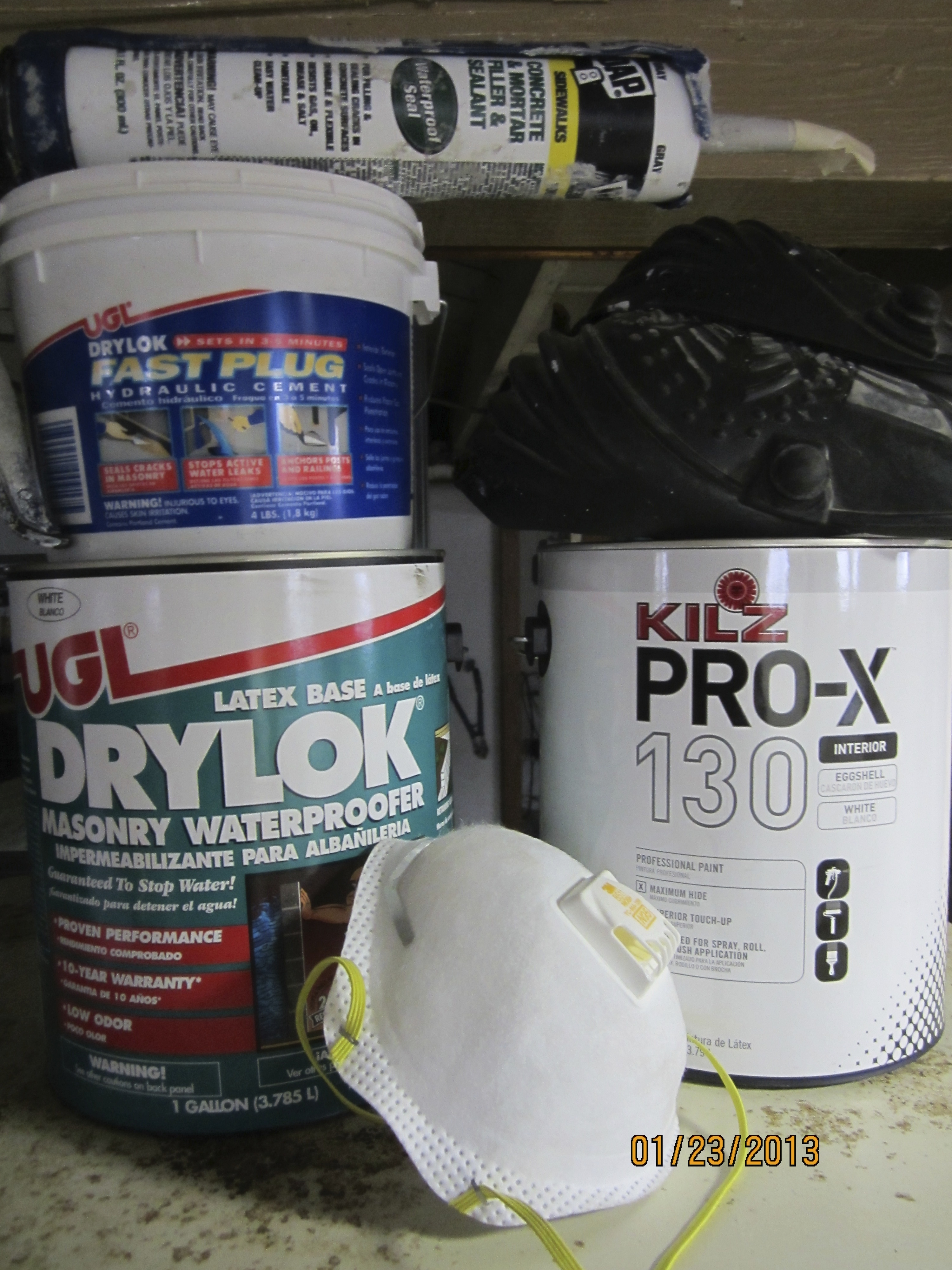 Before painting, we filled cracks with concrete caulk and repaired larger areas with UGL Fast Plug. Then I put on two coats of UGL Drylock Masonry Waterproofer. Finally, a coat of Kilz Pro-X 130 in eggshell white. Straightforward work which took two weeks to complete. The result of this work is truly astounding. The walls are sealed. There is no longer that old dirty smell in the basement. It’s livable!