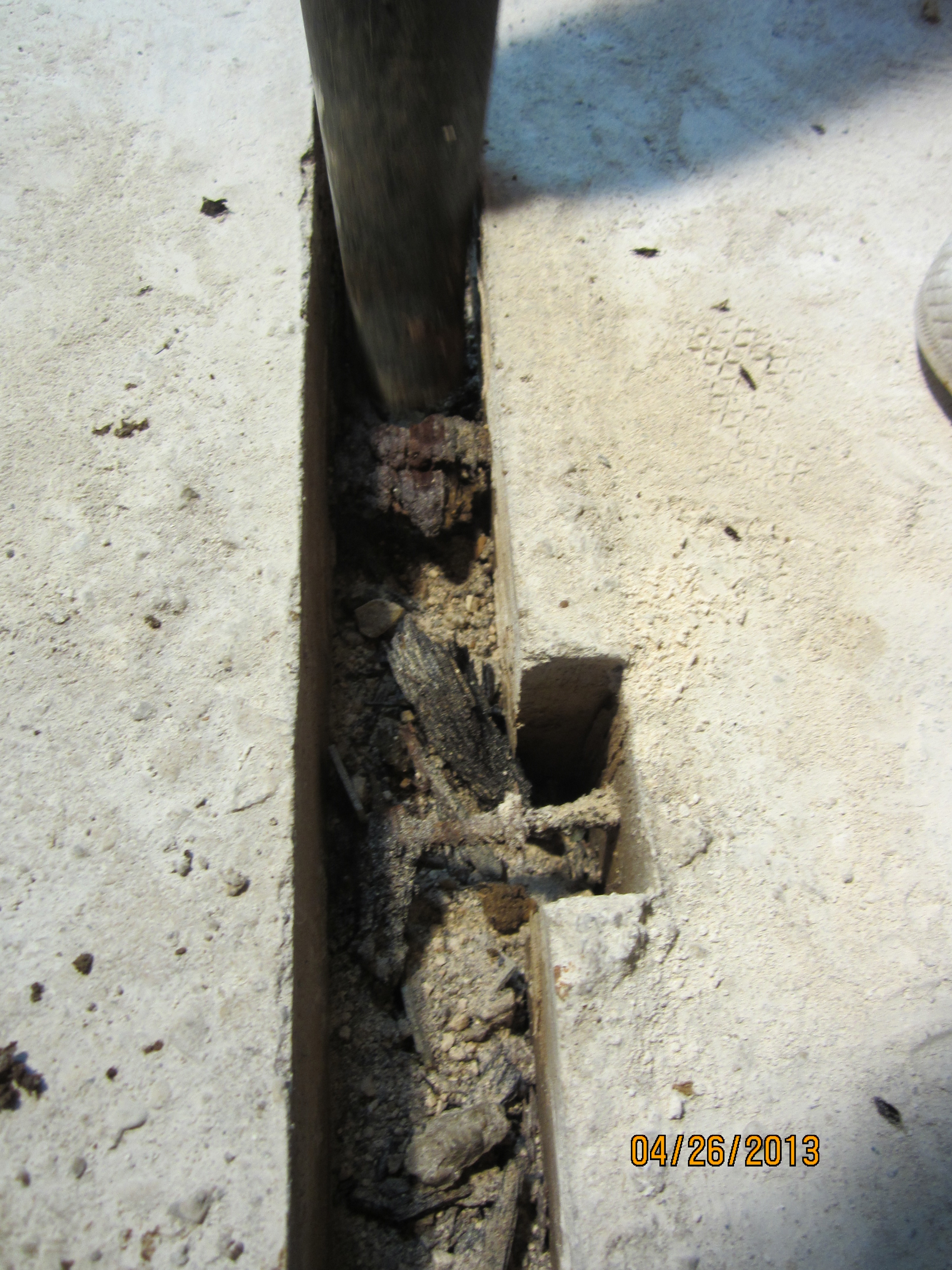 The second half of this story involves the gutters at the front of the house, along the furnace room wall. There were four holes in the gutters which had not yet been fixed. We had 11 inches of rain in 48 hours. Made the national news, Des Plaines River overflowed, a lot. Rain dripped out of these holes, building a pool by the foundation, which seeped down the foundation wall and through these now relatively empty channels in the old furnace room. The water was underneath the plastic we had laid on the floor, about 3 inches deep in the channels. We think this type of seepage happened repeatedly. That’s our only explanation for the decay of this floor. I’m so glad there are two floor drains in the basement. We wet-vac’d the water, fixed the gutter holes, installed downspout extenders and fan dried the dirt in the empty channels for two weeks. The gutter repair kept the rain water from pooling at the foundation and that seemed to stop any further seepage from subsequent rains.