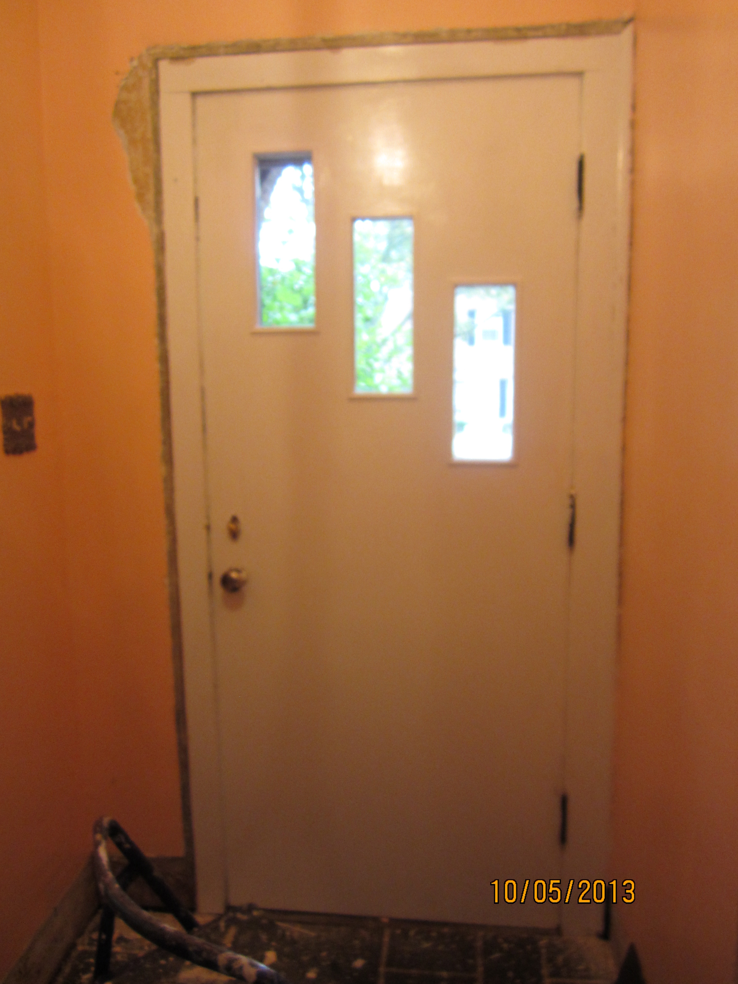 Interior view of the front door. Say "bye, bye" paint!