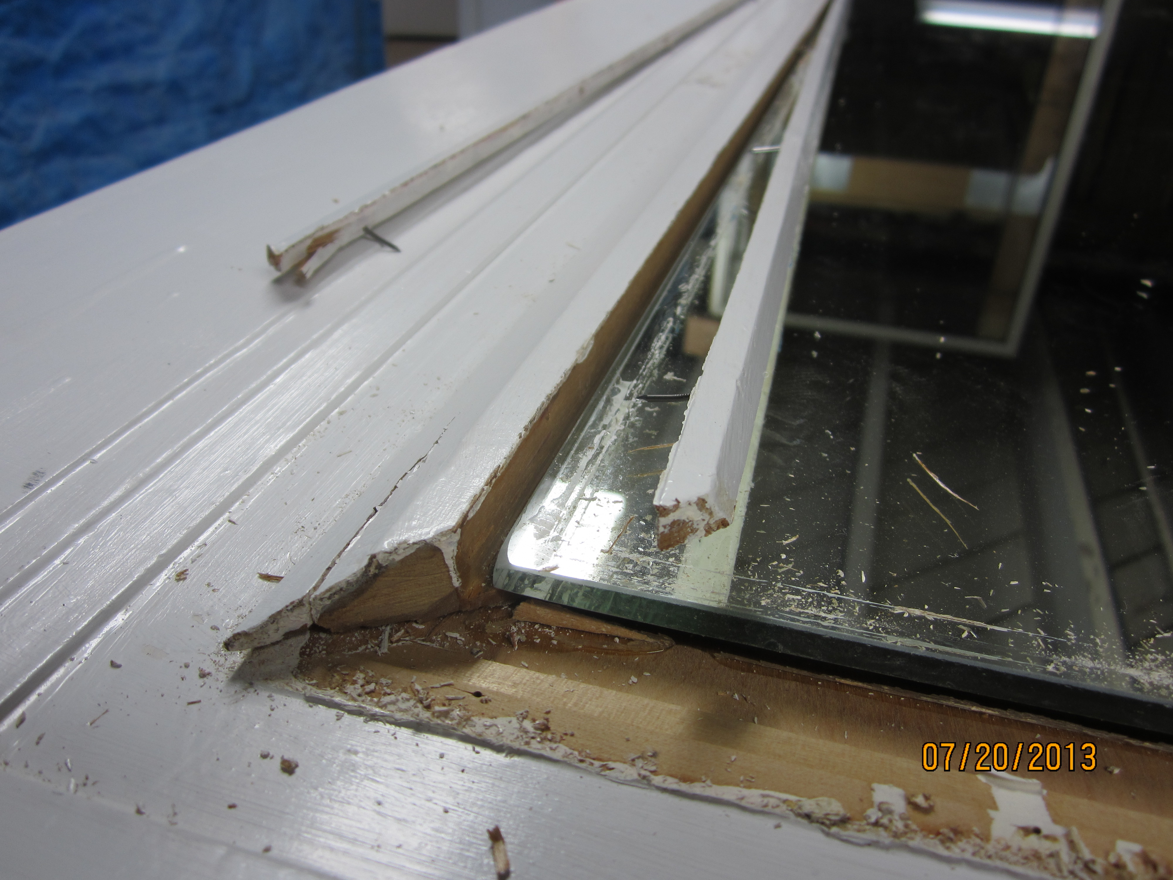 There was a full length mirror on the front of the closet door which I removed. I plan to reuse it in the house.