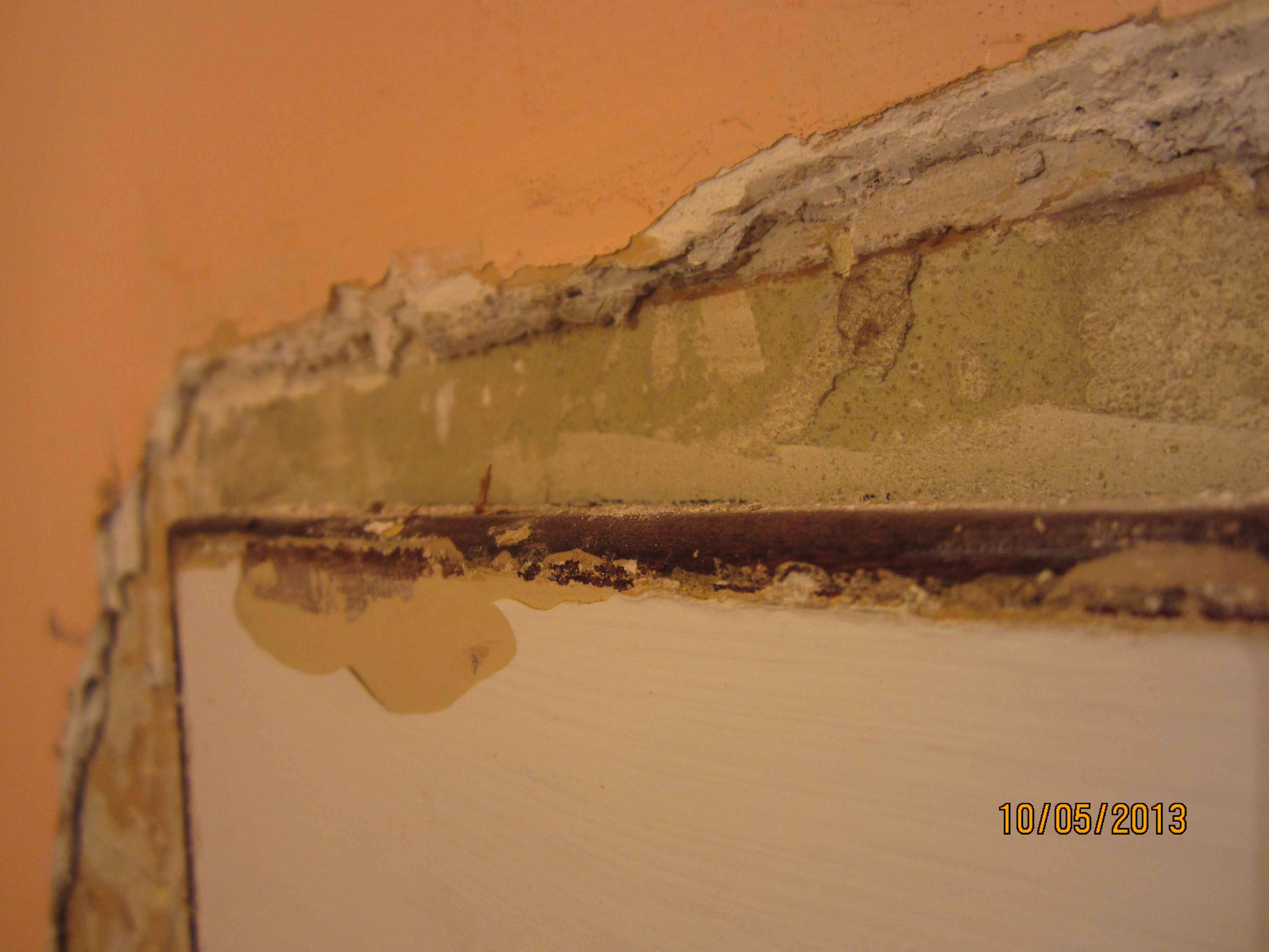 The first bit of work in the foyer involved chipping away tile to get to the floor trim. A previous owner had lain an outdoor tile on top of the hardwood floor without removing the floor trim. We chipped away and pulled off the trim pieces.