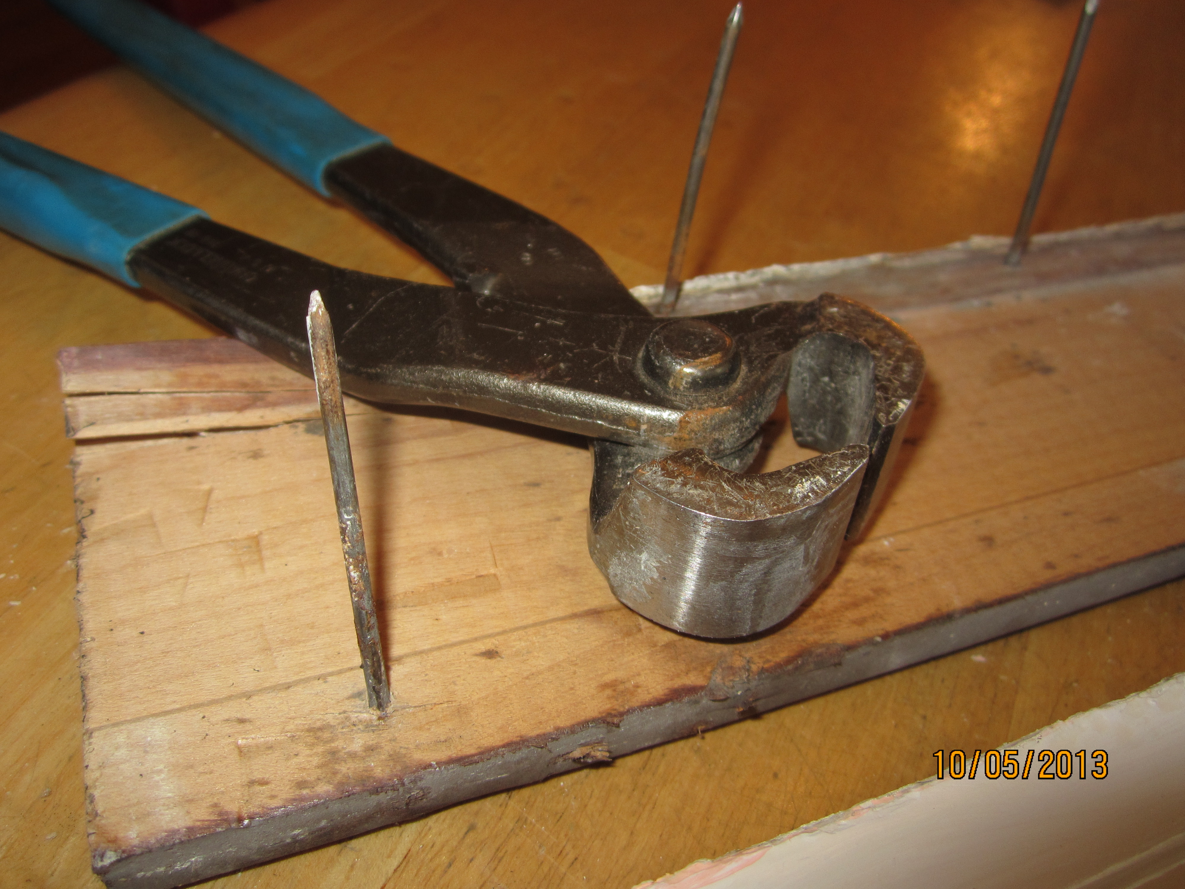 We pulled out original 1928 nails, they are really long! You’ll want to pull nails through the back side of the wood. This will prevent any nasty wood splitting on the front side.