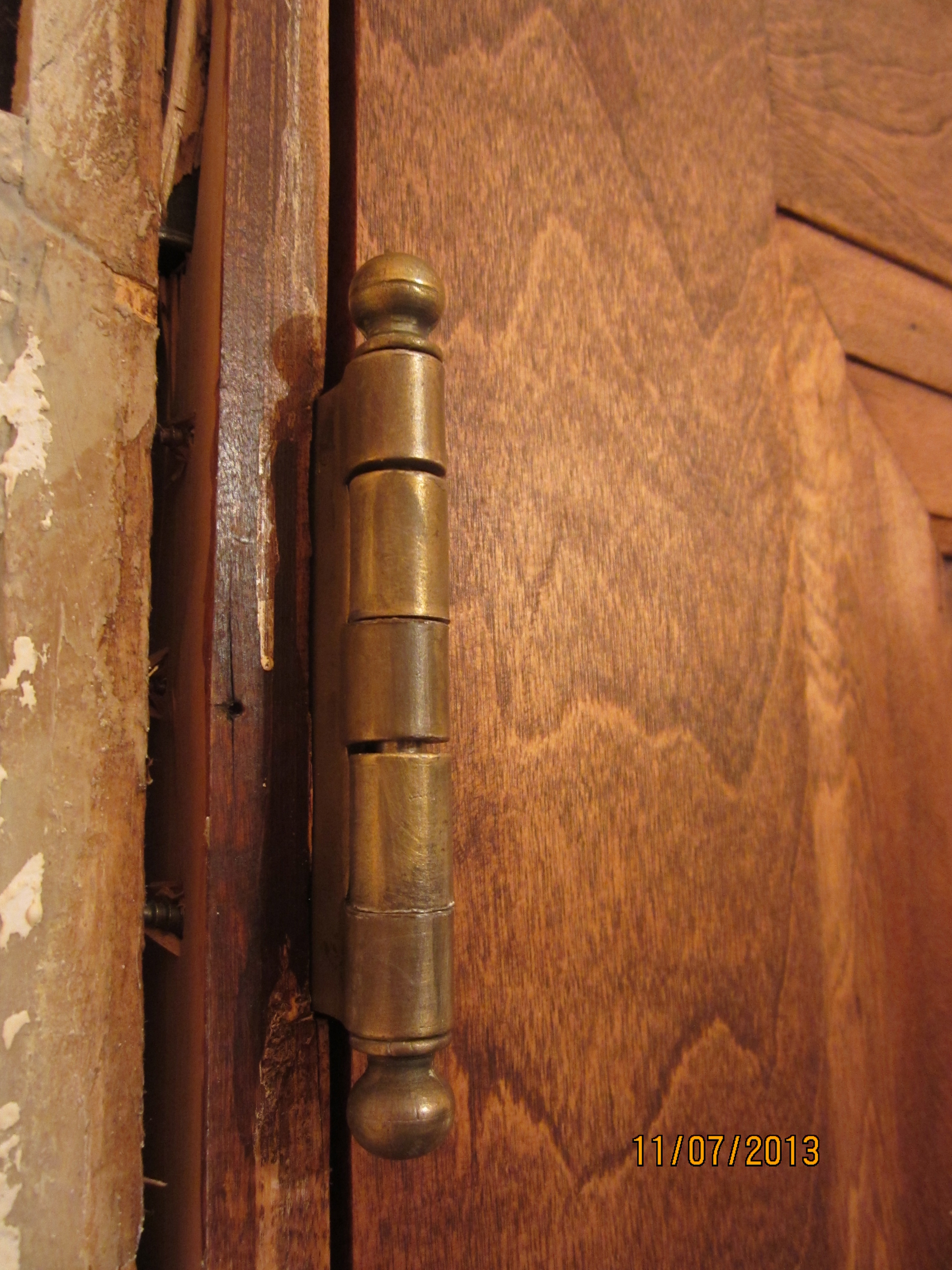 We did a great job of labeling the trim, but I DID NOT label the front door hinges . Big oops. The screw holes for each hinge were slightly different, set in by hand 85 years ago. They’d never been removed before us. We spent a good 45 minutes getting the hinge pairs together. One set had been originally put on upside down, which was a fun puzzle to solve. Again, label everything. Really.