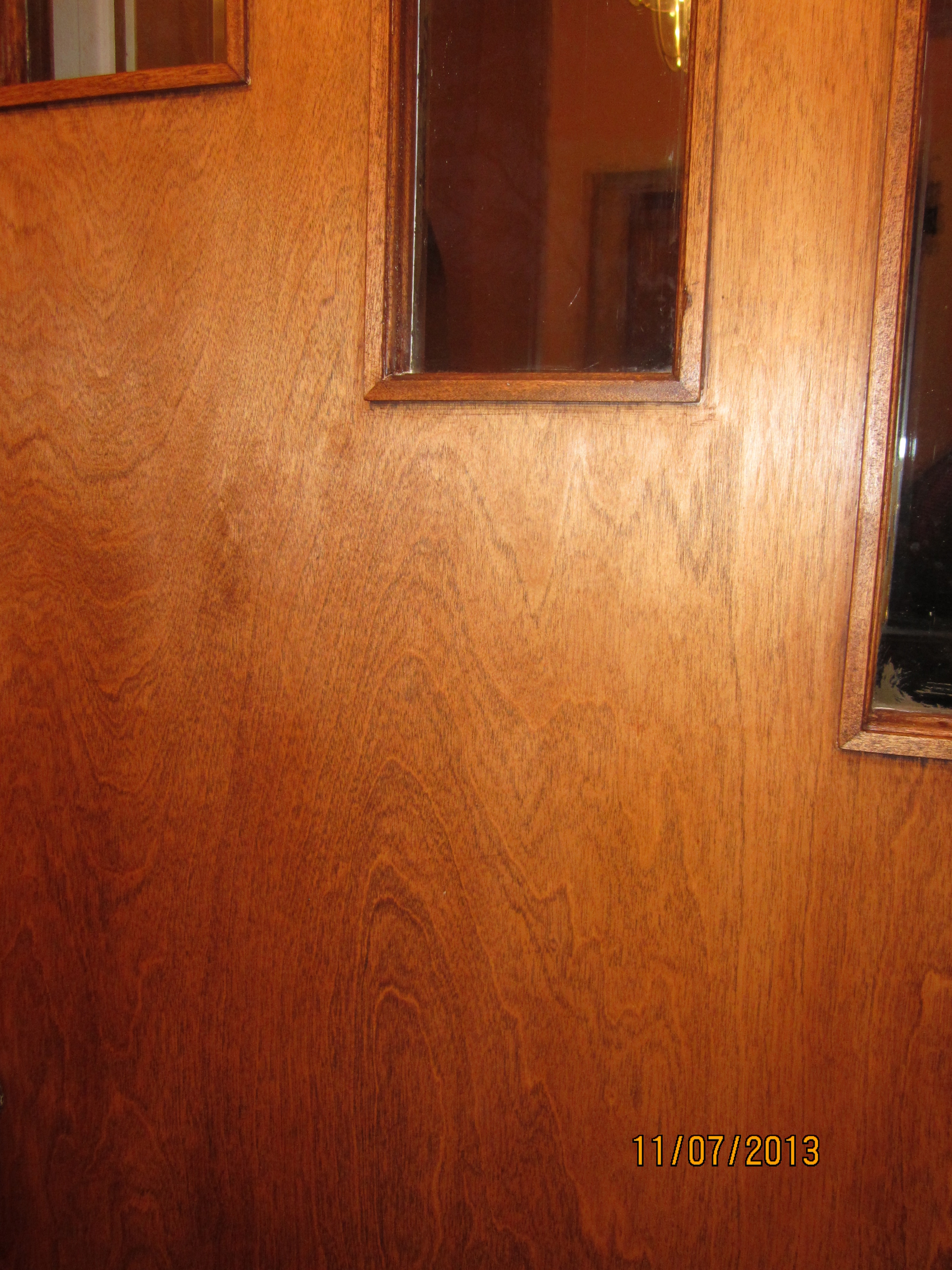 We began working on the closet door in July. Two months later, we rehung the finished door. Sure, we could have worked faster and finished in about one week, if every free minute was spent on the work, but there is life to live outside of our projects. Life and stuff happens. We’re not in a horse race here. This is our hobby and we plan to enjoy each project rather than race to complete them. But now I can say, the closet door is finished and all of the foyer trim work is refinished.