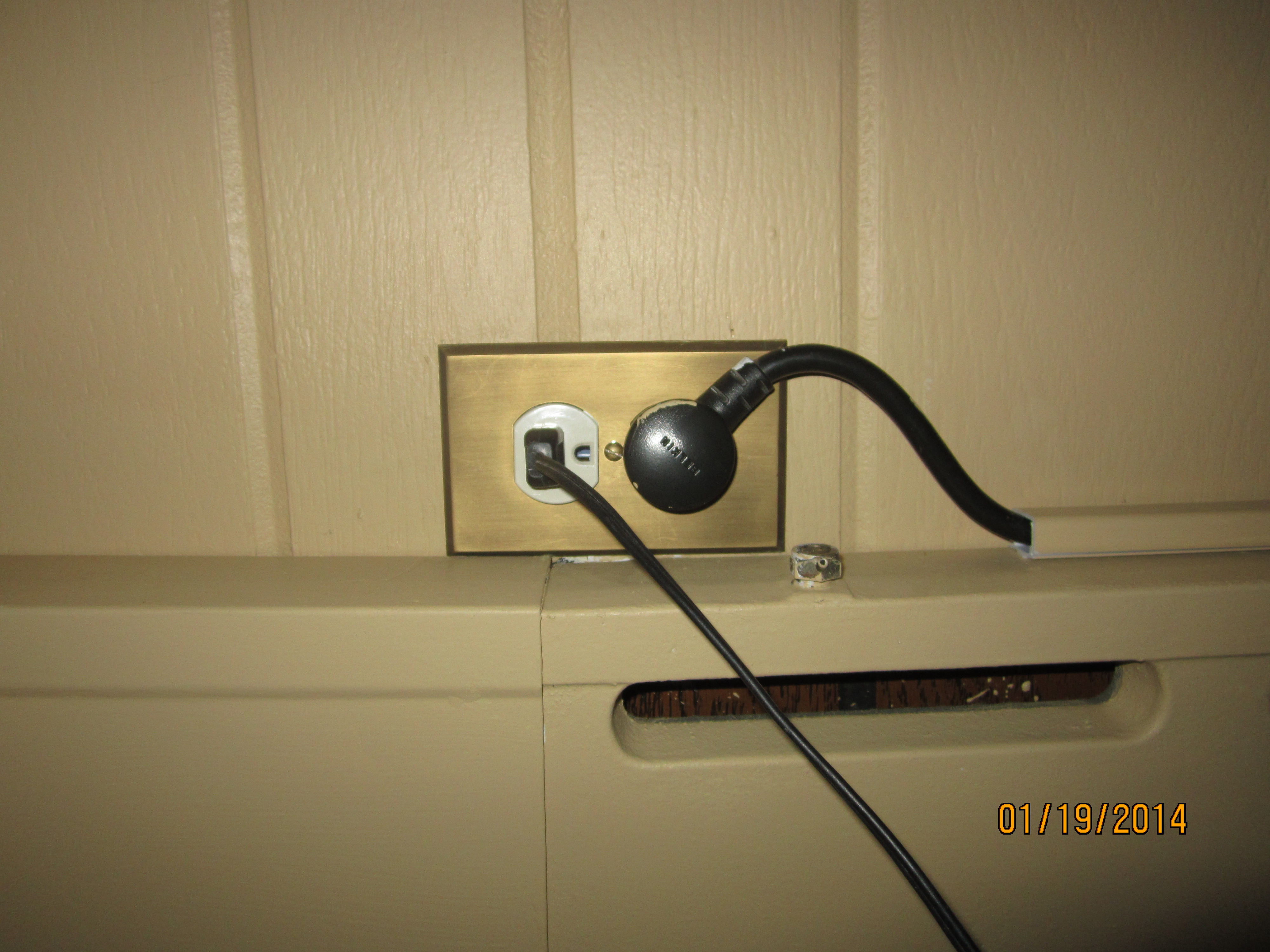 My husband changed out the outlet covers to the solid brass plates we purchased from House of Antique Hardware. We “hid” the TV/WiFi cords in one of those cord sleeves, painted it too.